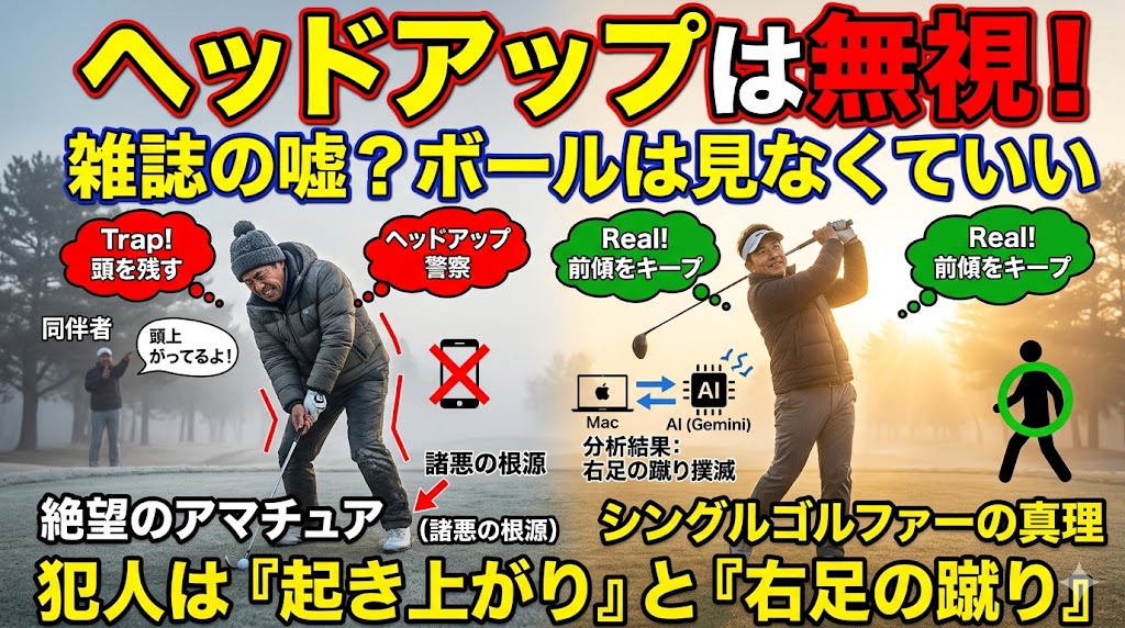 「ヘッドアップしてるよ」は無視してOK!スイングを破壊する最悪のアドバイスと“歩きスマホ”の法則 2026.03.22 人に聞けないソコんところ tetsunogolf ゴルファーてつの再起ゴルフ 雑誌の嘘?「グリップのVを右肩に」を真に受けると一生上手くならない理由 2026.03.22 人に聞けないソコんところ tetsunogolf ゴルファーてつの再起ゴルフ 20年100を叩いたおじさんが語る。朝イチのティーショットは「諦め」と「算数」だけで劇的に安定する 2026.03.21 人に聞けないソコんところ tetsunogolf ゴルファーてつの再起ゴルフ 20年100を叩き続けたおじさんが断言。バンカーが劇的に簡単になる「56度ウェッジ」の魔法と3つの裏技 2026.03.21 人に聞けないソコんところ tetsunogolf ゴルファーてつの再起ゴルフ 【第2部・第2話】雪夜のアルファロメオと「イモ争い」の屈辱。そして掴んだ奇跡の「4.7」 2026.03.19 【連載】再起の記録 tetsunogolf ゴルファーてつの再起ゴルフ 【連載第2部:転落編 第1話】「努力だけのシングル」への呪い。パンドラの箱を開けた日 2026.03.17 【連載】再起の記録 tetsunogolf ゴルファーてつの再起ゴルフ 【第3話】鼻水をすする自分への決別。50代ゴルファーを救う「腸内環境・報復戦略」 2026.03.15 【特設コーナー】50代のコンディショニング(肉体改造) tetsunogolf ゴルファーてつの再起ゴルフ 【第2話】「絶望のタニタ」から内臓脂肪を削ぎ落とした異常な食事と、50代が絶対に買うべき「たった1つの環境」 2026.03.15 【特設コーナー】50代のコンディショニング(肉体改造) tetsunogolf ゴルファーてつの再起ゴルフ 【第1話】「私を愛せるのは私だけ」ビール3L漬けの50代メタボおじさんが、AI軍師と肉体改造を始めた本当の理由 2026.03.15 【特設コーナー】50代のコンディショニング(肉体改造) tetsunogolf ゴルファーてつの再起ゴルフ 【衝撃】特定の番手だけ当たらない理由。数十万の新品アイアンに潜む「罠」と工房の真実 2026.03.14 人に聞けないソコんところ tetsunogolf ゴルファーてつの再起ゴルフ もっと見る