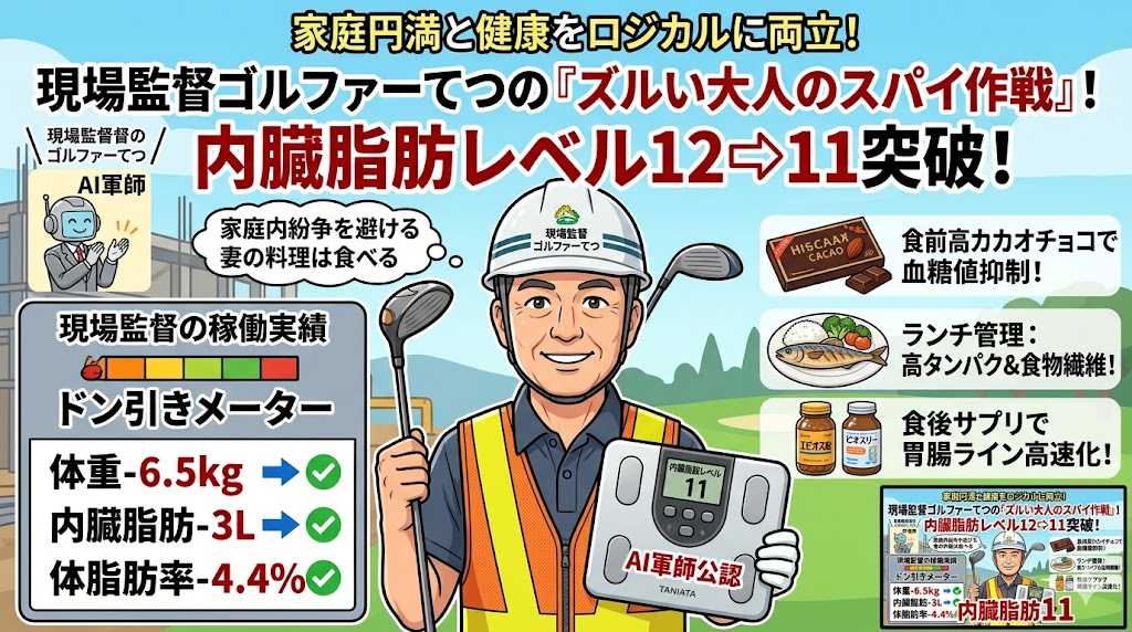 【第3話:内臓脂肪レベル11への「裏口入学」。家族にバレずにコッソリ痩せる、50代の「スパイ作戦」】 2026.04.06 【特設コーナー】50代のコンディショニング(肉体改造) tetsunogolf ゴルファーてつの再起ゴルフ