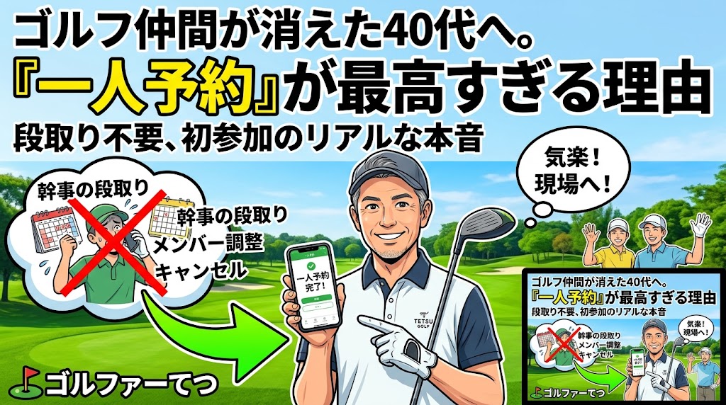 【第3話:内臓脂肪レベル11への「裏口入学」。家族にバレずにコッソリ痩せる、50代の「スパイ作戦」】 2026.04.06 【特設コーナー】50代のコンディショニング(肉体改造) tetsunogolf ゴルファーてつの再起ゴルフ ゴルフ仲間が消えた40代へ。段取り不要の「一人予約」が最高すぎる理由と、初参加のリアルな本音 2026.04.05 人に聞けないソコんところ tetsunogolf ゴルファーてつの再起ゴルフ 【無料ツール配布】ゴルフ会員権は「掛け捨て」か?普通のサラリーマンが損益分岐点をガチ計算してみた 2026.04.01 人に聞けないソコんところ tetsunogolf ゴルファーてつの再起ゴルフ 審査落ち(手戻り)を防ぐ!ホールインワン保険・領収書の「絶対ルール」 2026.03.28 人に聞けないソコんところ tetsunogolf ゴルファーてつの再起ゴルフ 練習場番長からの脱却!製造現場の「QCストーリー」で暴く、コースで打てない本当の理由 2026.03.28 人に聞けないソコんところ tetsunogolf ゴルファーてつの再起ゴルフ 呪文を覚えるな、会話を楽しめ!AIコーチと「壁打ち」して見つけた、私だけのスイング改造録 2026.03.23 【連載】再起の記録 tetsunogolf ゴルファーてつの再起ゴルフ 「ヘッドアップしてるよ」は無視してOK!スイングを破壊する最悪のアドバイスと“歩きスマホ”の法則 2026.03.22 人に聞けないソコんところ tetsunogolf ゴルファーてつの再起ゴルフ 雑誌の嘘?「グリップのVを右肩に」を真に受けると一生上手くならない理由 2026.03.22 人に聞けないソコんところ tetsunogolf ゴルファーてつの再起ゴルフ 20年100を叩いたおじさんが語る。朝イチのティーショットは「諦め」と「算数」だけで劇的に安定する 2026.03.21 人に聞けないソコんところ tetsunogolf ゴルファーてつの再起ゴルフ 20年100を叩き続けたおじさんが断言。バンカーが劇的に簡単になる「56度ウェッジ」の魔法と3つの裏技 2026.03.21 人に聞けないソコんところ tetsunogolf ゴルファーてつの再起ゴルフ もっと見る
