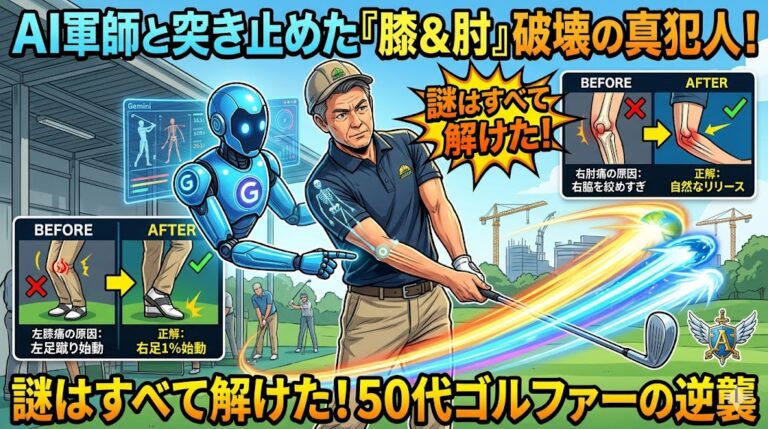 こんにちは!現場監督ゴルファー・てつです!⛳️ AI(Gemini)を軍師として駆使し、再びシングルプレイヤーに返り咲くべくスイング改造に取り組んでいます。今回は、その検証の現場で起きた絶望と葛藤、そして「謎が解けた瞬間 … 続きを読む 【ドキュメント】AIと暴いた「痛みのドミノ倒し」。50代おじさんのスイング改造・謎解きドキュメンタリー