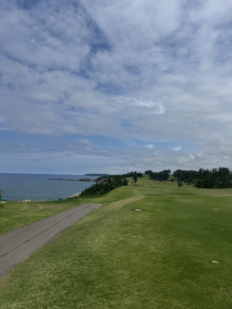 記念すべき第1回目の現場は、2023年日本女子オープンで日本中を熱狂させた、海コースの最終18番(Par5)です。 私自身、何度も戦い、その生々しい海風を肌で感じてきた現場です。