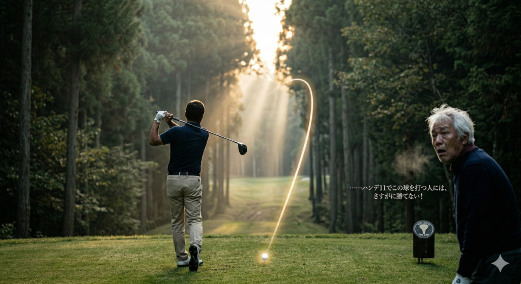 ハンデの差の追い風もあり、序盤から気合と練習の成果が火を噴いた。ショットはことごとく芯を喰い、前半を終えてなんと3アップ。後半に入っても勢いは止まらず、4アップの大量リードで迎えた12番ホール。 左右から木々が迫る、息が詰まるほど狭いフェアウェイ。少しでも力めば即死のプレッシャーの中、私は迷いなくドライバーを振り抜いた。
