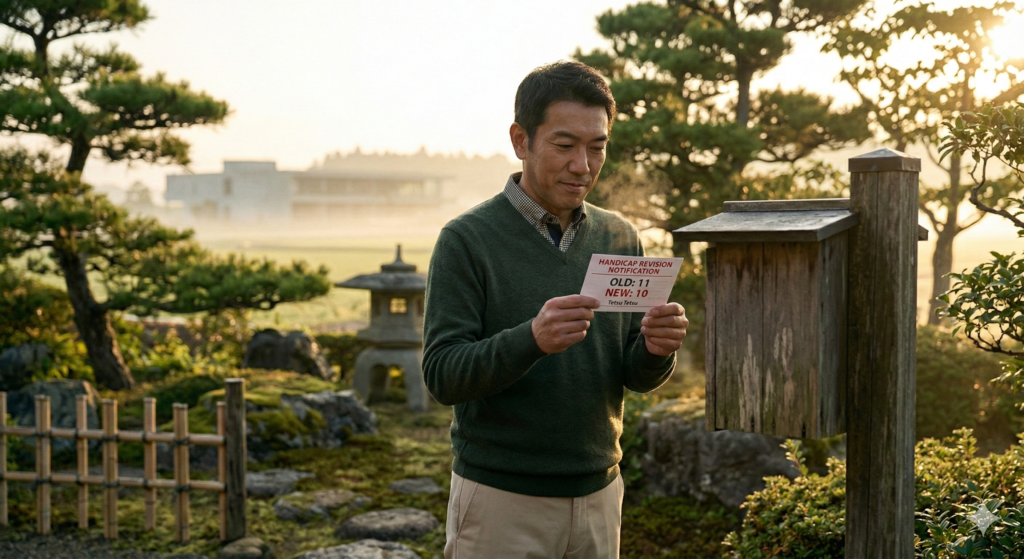 決戦を数日後に控えた日、ポストに一通のハガキが届いた。クラブからのハンディキャップ改訂通知。 【HDCP 11 → 10】