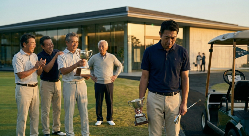 このクラブの絶対的象徴。飛距離でねじ伏せるのではない。精密機械のアイアンと、相手に絶望を与えるようなアプローチで、淡々と心を折ってくる「生ける伝説」だ。さっきまでの充実感は吹き飛び、そびえ立つ絶壁を見上げるような錯覚に陥った。